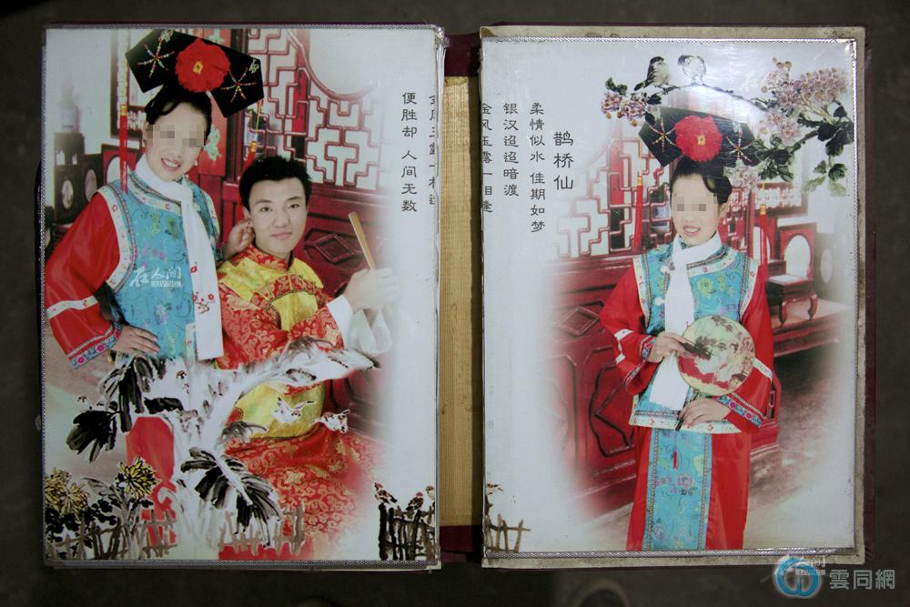 烨斌曾有过一次短暂的婚姻。初中毕业后他不再上学,从那时起就陆续有人说媒,为了逃避婚姻他开始外出打工,“即使身无分文,也不愿意回家”。2004年底,在外游荡的一年的他屈从于家庭压力,归家与一个邻村的女孩相亲并很快完婚。在这段持续了不到两个月的婚姻中,他始终没有和新娘子圆房,“有一次和她躺在床上,我能感觉到她想什么,最后我实在忍不住,就吐了。”正月初六,女孩回了娘家,再也没回来。图为烨斌与前妻的结婚照。