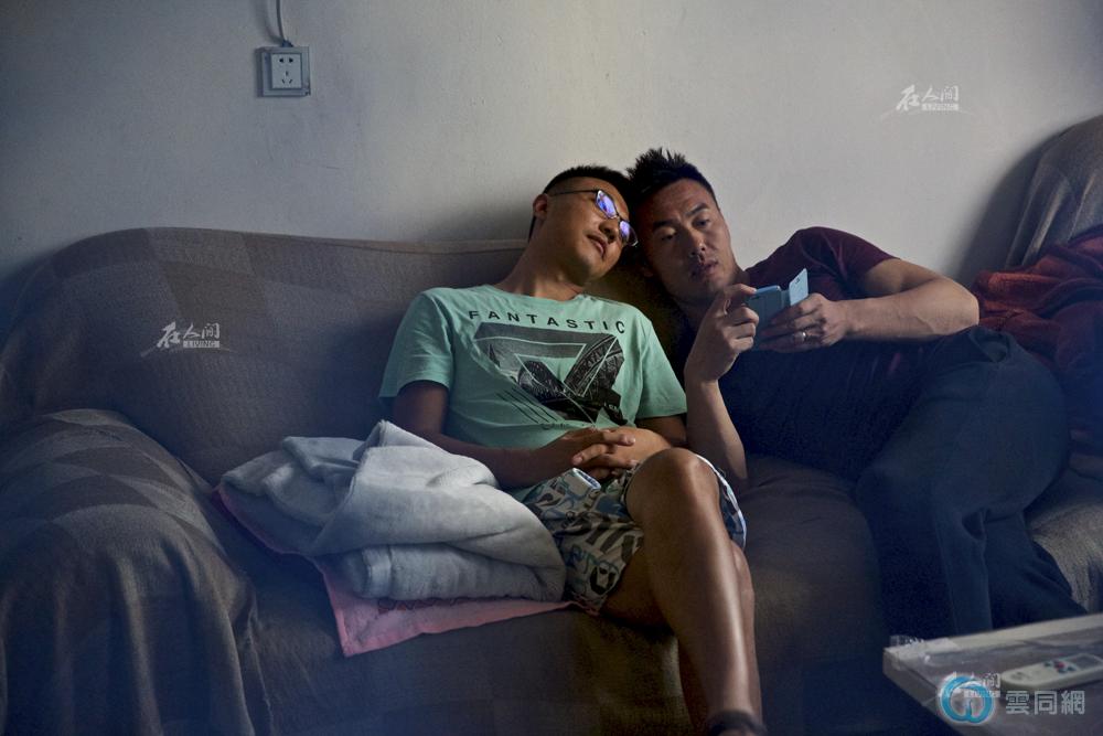 安伟说,没有人有权力评判别人选择生活的方式,自己对现在的生活很满意。图为安伟和烨斌肩并肩躺在床上。