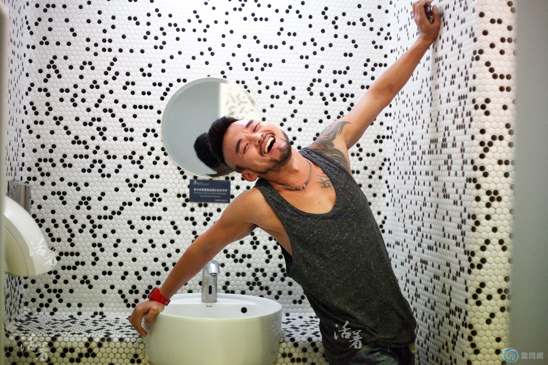 2013年9月,蜜桃受朋友邀请来国贸附近的一个gay吧做酒吧开业舞蹈表演,休息间隙,他在卫生间里摆起造型,他说他很喜欢这个马赛克墙。过了半年,蜜桃告诉我那个酒吧倒闭了。