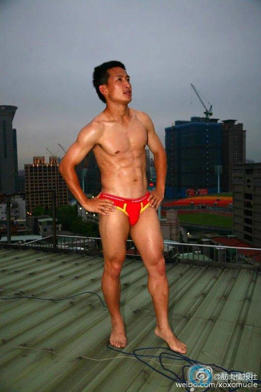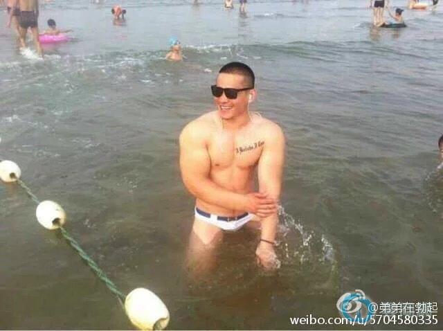 2022横渡钱塘江的肌肉男来了,大胸肌小泳裤太..