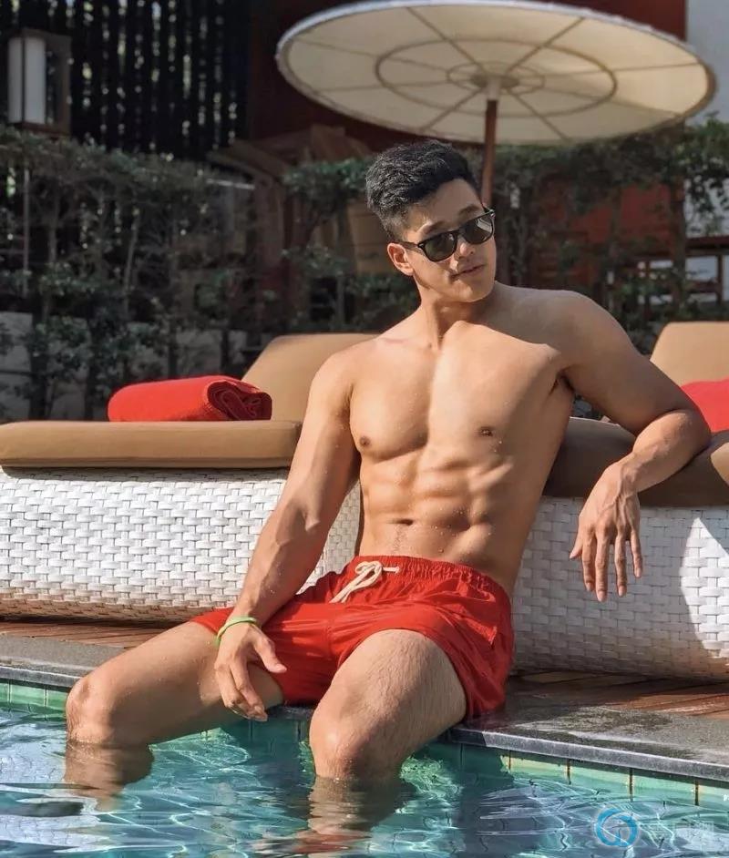 2022横渡钱塘江的肌肉男来了,大胸肌小泳裤太..