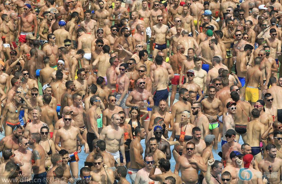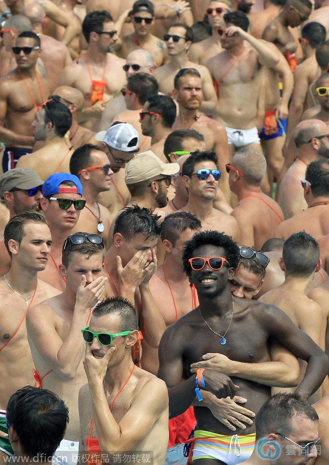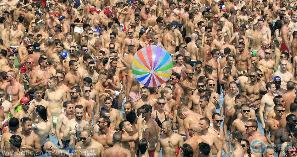 当地时间2014年8月12日,西班牙巴塞罗那,8000人齐聚参加同性恋派对,俊男靓女裸身戏水。据悉,该同性恋派对是欧洲最重要的同性恋集会活动,其中80%的参与者是来自50多个国家的外国人,10%的参与者是女子。
