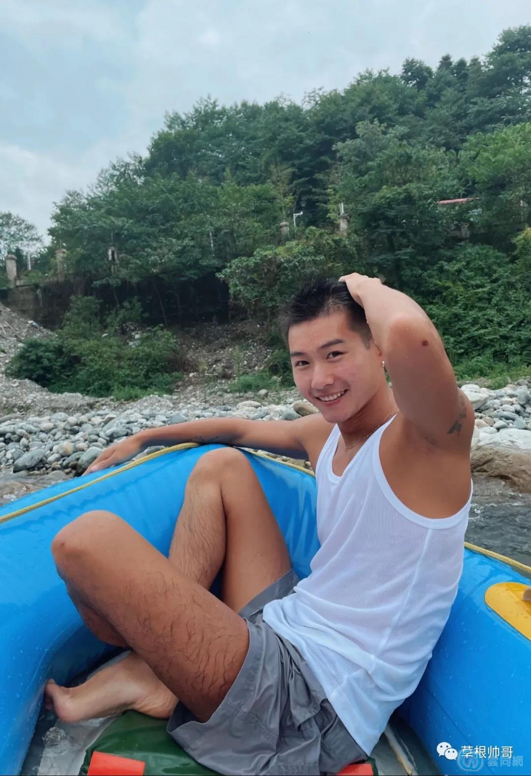 今天给大家带来的是@冲浪男孩 的一组照片,穿灰裤子去玩水的他,玩得太开心了,全身都湿透了。
