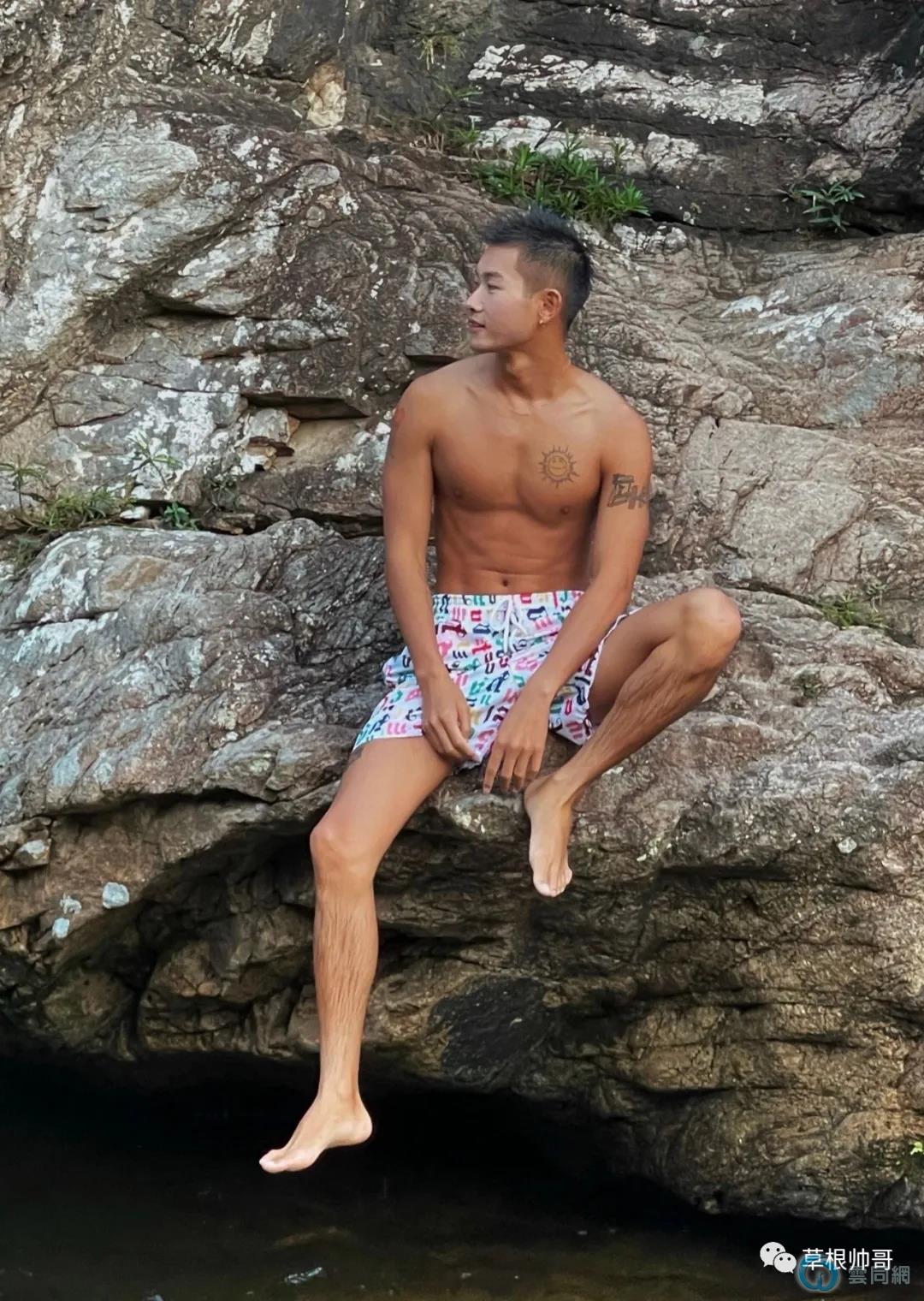 钻石体育生穿紧身裤野泳,太好看了