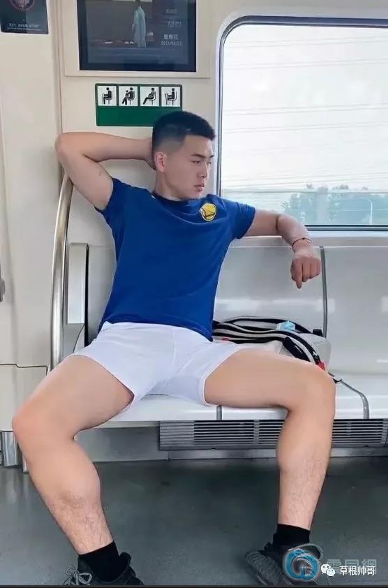 高铁上的大胸肌壮男穿超短裤,这粗壮的大腿亮了!