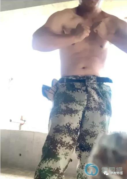 高颜迷彩小哥新照穿太低露内裤边!运动裤太顶了
