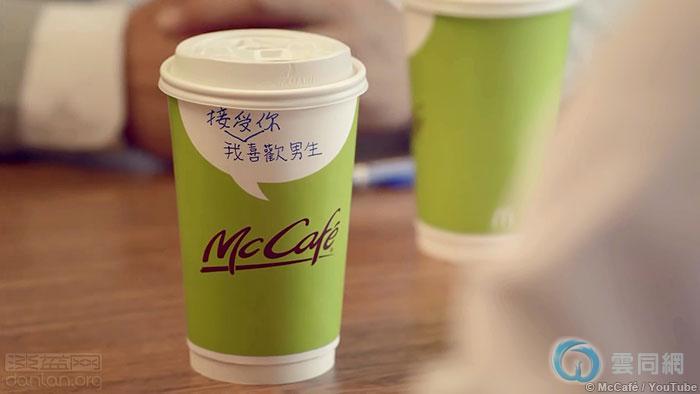 这个1分半中的广告非常简单,没有一句台词,儿子在麦咖啡的杯上向父亲坦白,写下“我喜欢男生”,在尴尬的气氛中,父亲却在“我”的后面加上了三个字“接受你”。