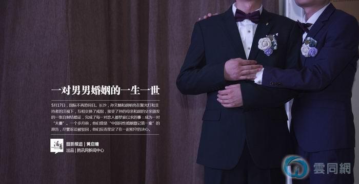 在婚礼化妆间中,两人依偎在一起休息,一直以来紧绷的神经渐渐松弛下来。为了婚礼这一刻,他们等待了太久,经历了太多。2014年,孙文麟在网络上遇见了比他大10岁的胡明亮。见面之后,两人一见倾心。“我们要像其他的异性恋一样生活”,在这样的念想之下,2015年6月23日,两人相识的纪念日,孙文麟和胡明亮去长沙市芙蓉区民政局登记结婚,结果是“不予登记”。