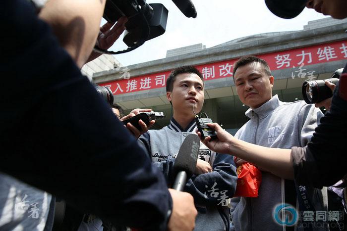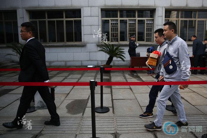 4月13日,“中国同性婚姻登记”第一案在长沙芙蓉区法院开庭。在律师陪同下,两人手牵手走进法院,手里还捧着准备在法庭上送给法官的喜糖。