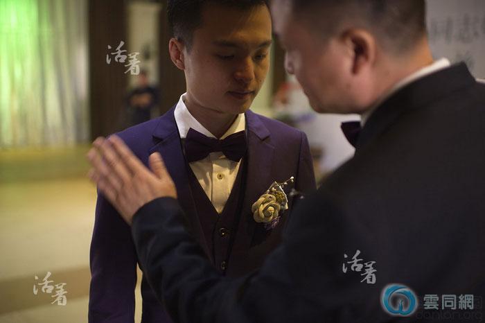 婚礼彩排现场,孙文麟和妈妈在一起讨论婚礼的细节。更多的时候,孙妈妈是建议儿子如何保护自己。现在这个婚礼场地是临时更换的,就在4天前,原先同意免费提供场地的老板得知是同志婚礼后,坚决撤出。