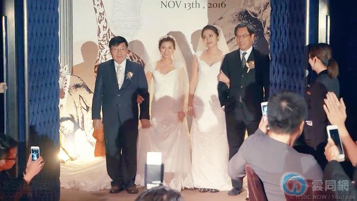 张怡贞(右二)挽着CEO的手,与邱于珊完成婚礼
