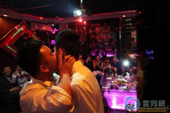 柘荣县——福建省最小的县城,位于宁德的大山深处,这里民风纯朴,人们安居乐业。10月2日,电动车组成的迎新车队穿行在大街小巷,四面八方的赶来的上千群众共同见证一场由两位新郎举办的特殊婚礼。24岁的陆忠和20岁的刘旺强,是福建首对公开结婚的男同志。婚礼在县城一家酒店隆重举行,陆忠的大姐等5位同辈亲友以及来自广东、广西、北京等地的约60位网友、朋友参加了他们的婚礼。