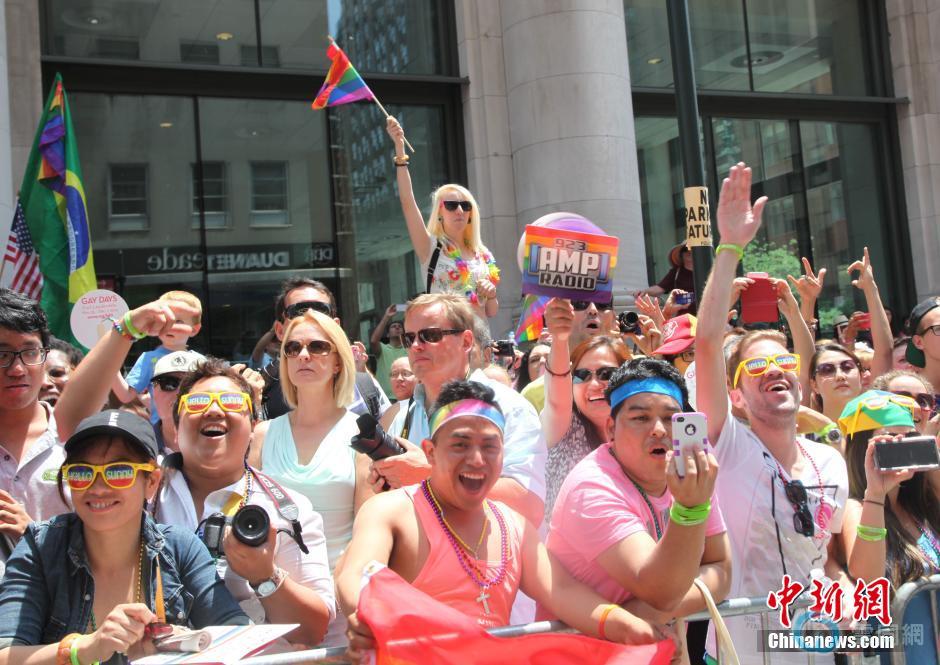 本届游行汇集数百个团体,人群从36街沿第5大道南下至格林威治村克里斯托弗大街的“石墙”酒吧,纪念全球同志运动里程碑事件“石墙暴动”45周年。一路上随处可见色彩鲜艳的六色彩虹旗,彩车上的电子舞曲和性感舞者引领周围民众狂欢热舞。