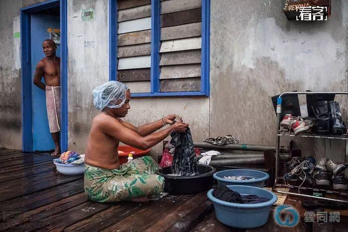 斯皮迪正在洗衣服。在巴新国,男同性恋者中的女性角色往往承担了传统女性的工作,例如洗衣、做饭等。