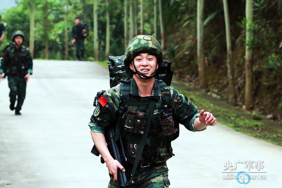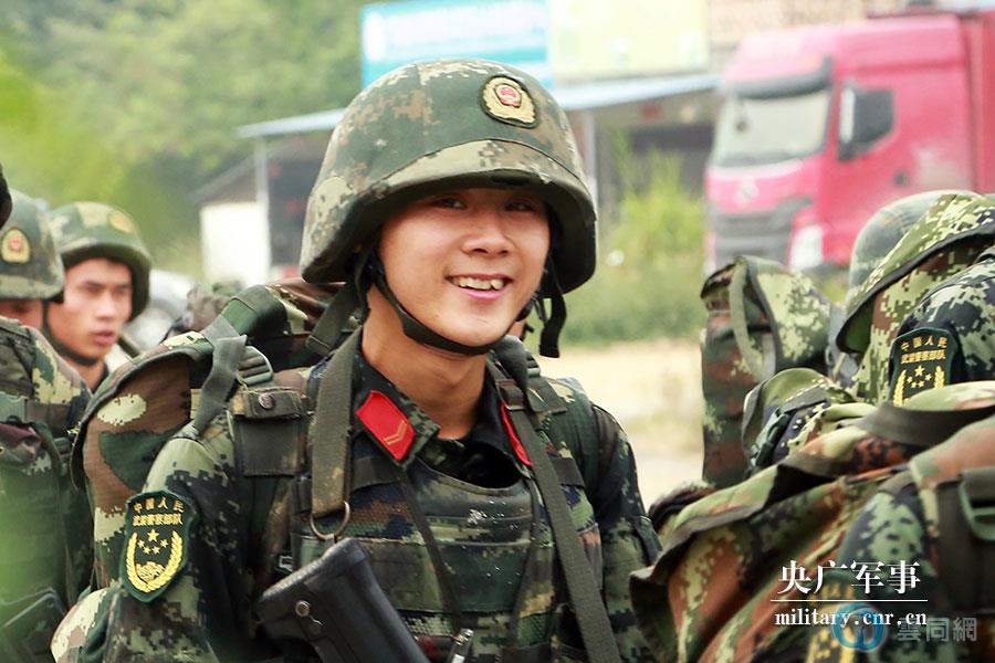 来自武警特战队员练兵场上世界微笑日的笑容