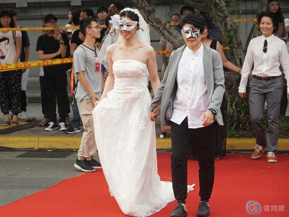 虽然已经正式合法,但有鉴于社会上仍然有反对同婚的声浪存在,不少伴侣从下午的预演一直到宴会结束,都仍然戴上面具以隐藏真实身份。