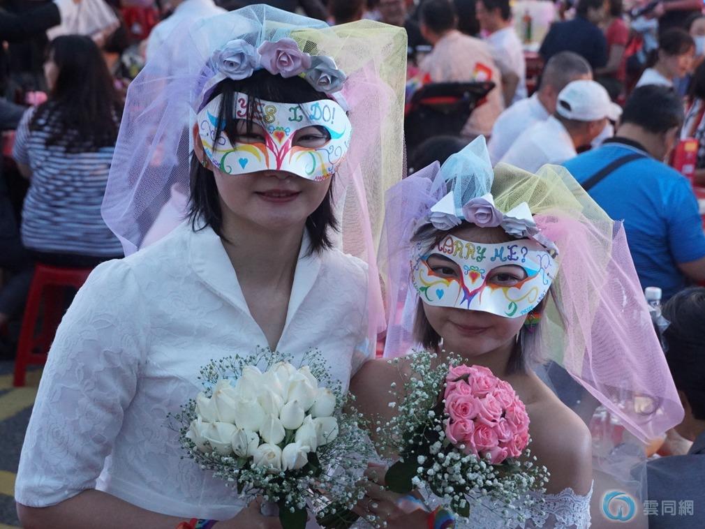 許秀雯认为,2018年底的公投案已经通过以专法保障同志结婚的权利,同性婚姻专法是完全尊重公投结果的结论,反同团体却仍然喊出“民主已死”,完全是政治化的口号,是非理性的恐同。图为参加婚礼的伴侣。