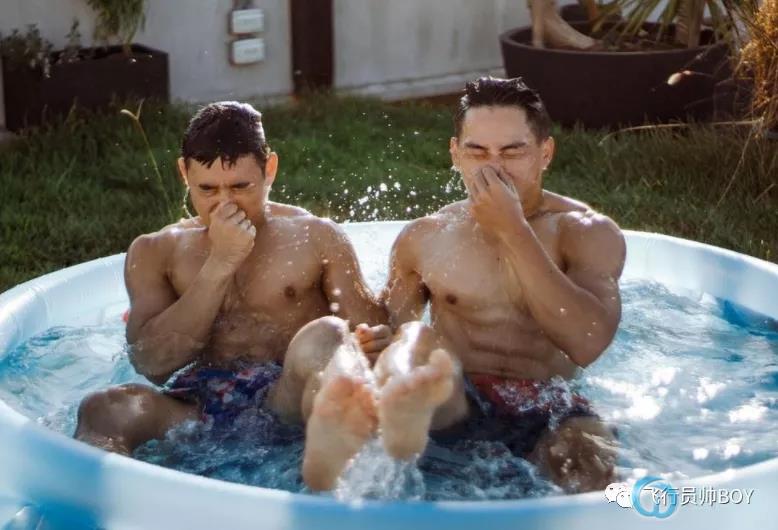 夏日里玩水的两个大男孩,原本就已经很美好了,没想到的是他们的身材还那么好。