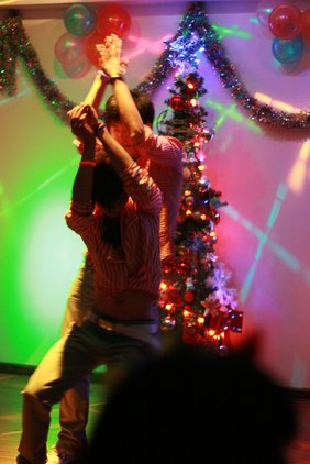 演出开始,先是一段热舞,把大家的情绪进一步提升。开场舞的演员们都带着神秘、诡异的面具,让人们感觉置身异域。现代舞、芭蕾舞、演唱、互动游戏等一系列节目,让到场所有朋友们的热情此起彼伏。节目间隙还为大家安排了“的高”舞曲,激情的节奏,热烈的气氛,让朋友们感受到了圣诞的节日气氛和快乐。