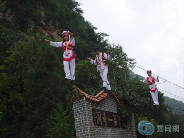 水帘洞,洞长不足1000米,明末旅行家徐霞客曾到此一游,留下了天下第一奇洞的美誉!通天河延伸洞中,九天瀑布如银帘从天而降。