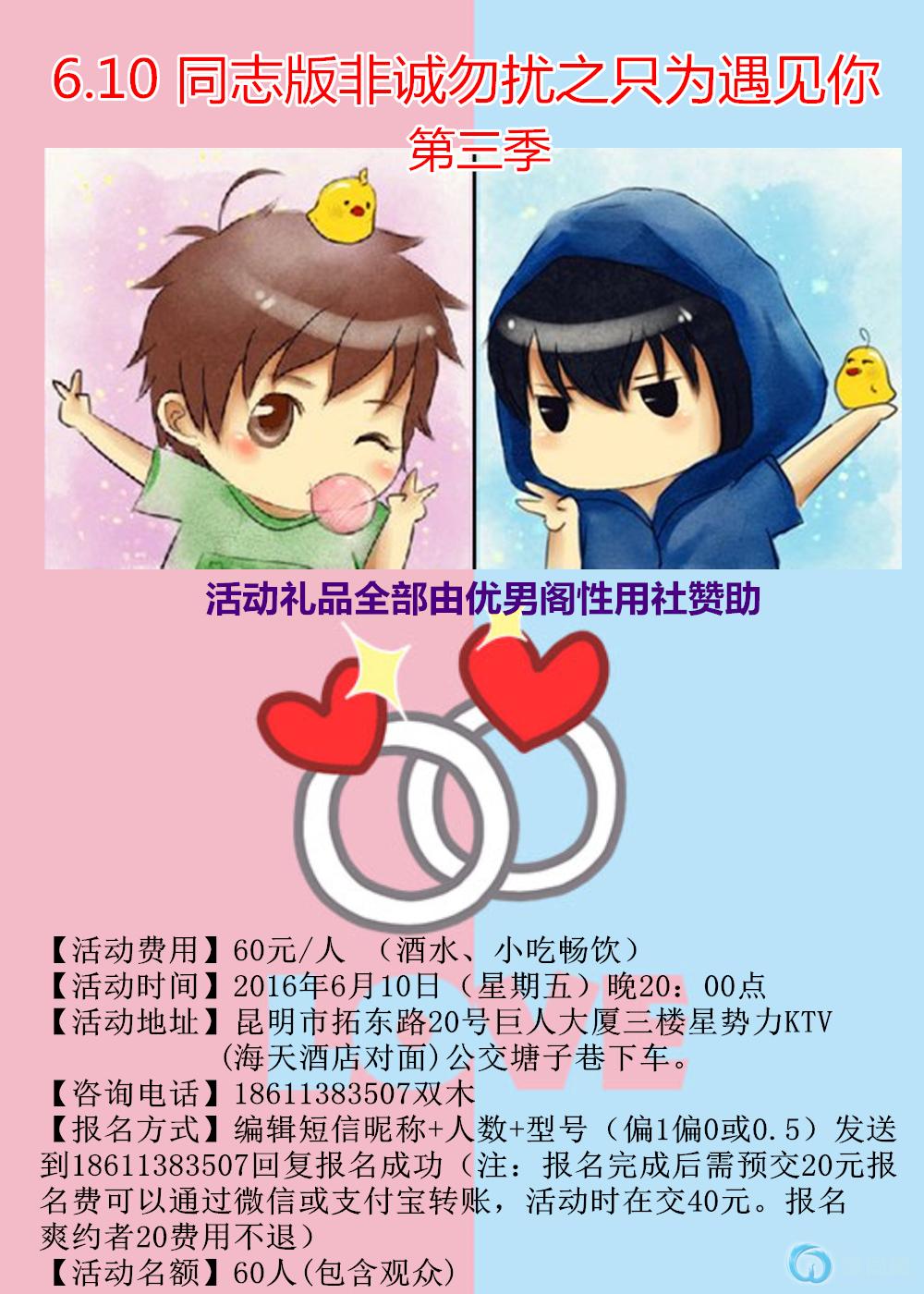 【活动费用】60/酒水、小吃畅饮每位朋友都有一份价值50元小礼品,由优男阁性用社赞助。