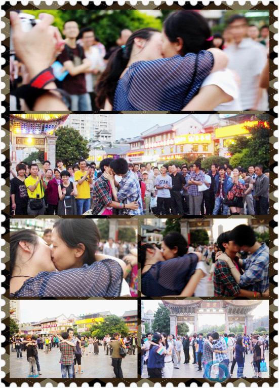 2012年5月27,在云南的昆明有这样一群人,用自己的亲吻与拥抱感染了每一个驻足观看的路人,把平等和包容传递给大家。TA们是都是同性,TA们正相爱,他们是来自云南平行这个公益组织的志愿者。云南平行成立于2007年10月,是一家立足云南性少数人群社区的公益非政府组织。他们想通过行为艺术的最直接的表达同志的爱,让社会大众能够意识到有这样的一个群体就在我们身边,他们除了喜欢的对象是同性之外,没有什么和异性恋不一样,他们是同志。