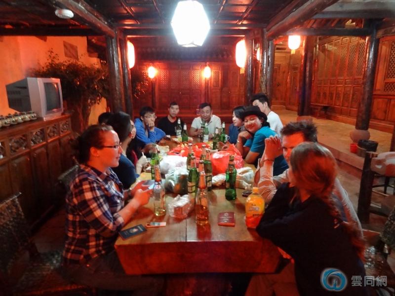 白天行程结束,吃完了晚饭后,大家坐在武家大院,一起喝酒聊天,和火车上遇到的朋友一起文化交流,很多人都是第一次见,不过很好的事,没有隔阂,大家聊得很开心