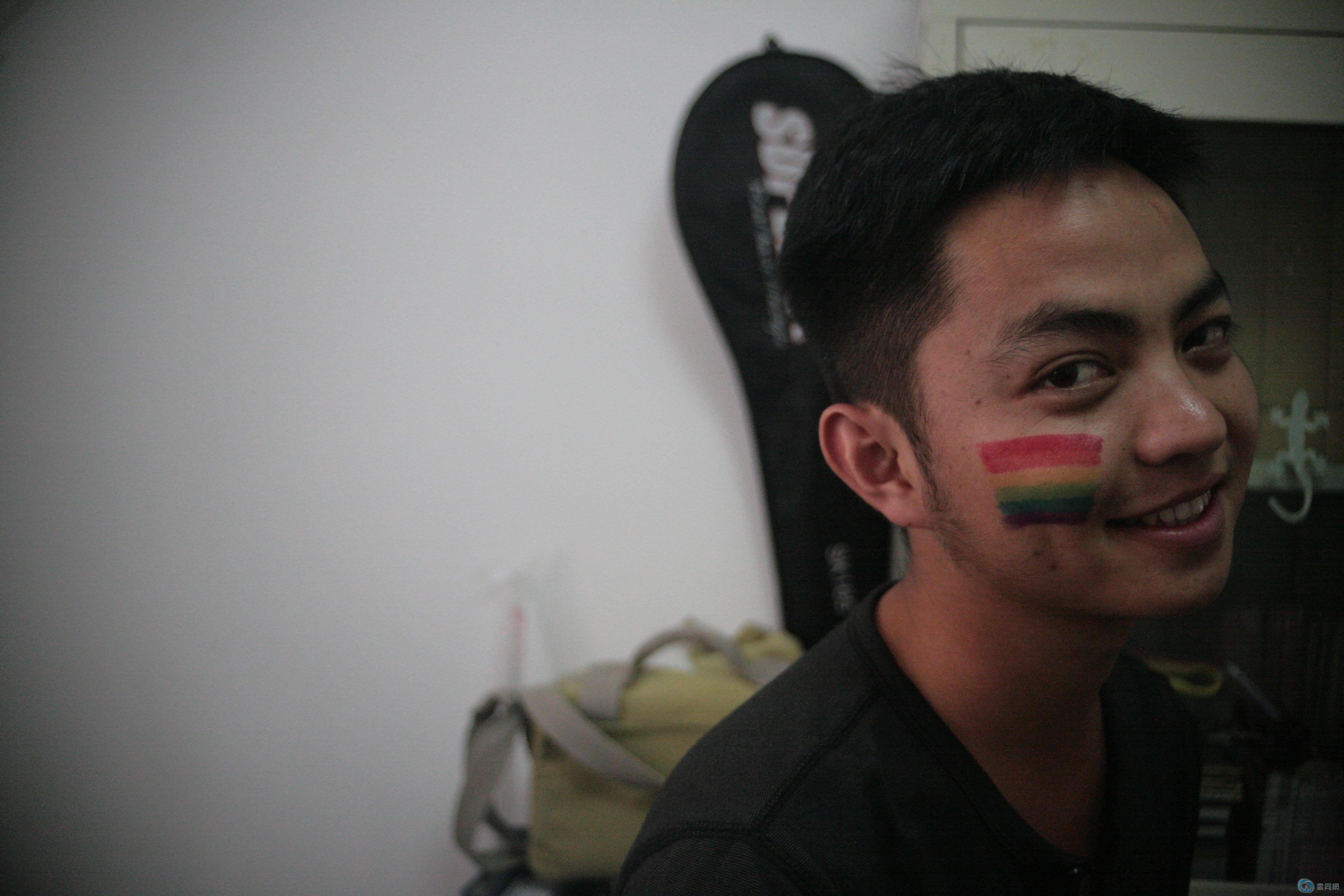 脸上涂满彩虹色彩 特意调休参加的小干豆~~~