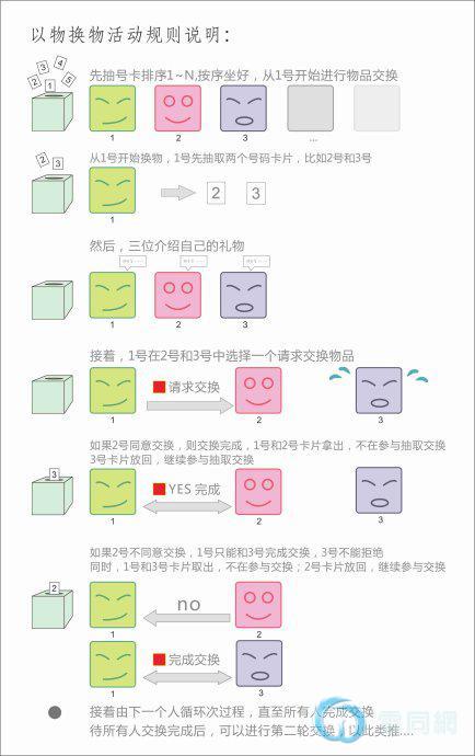 主持人写好人数的阿拉伯数字,再由所有人抽取按照位置排好,先由A来交换