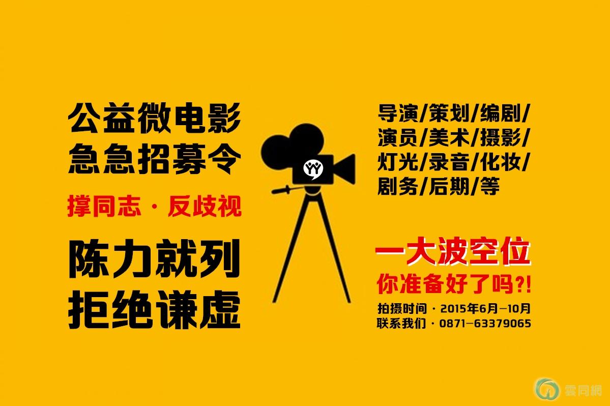 【招募职位】导演、策划、编剧、演员、美术、摄影、灯光、录音、化妆、剧务、后期等。