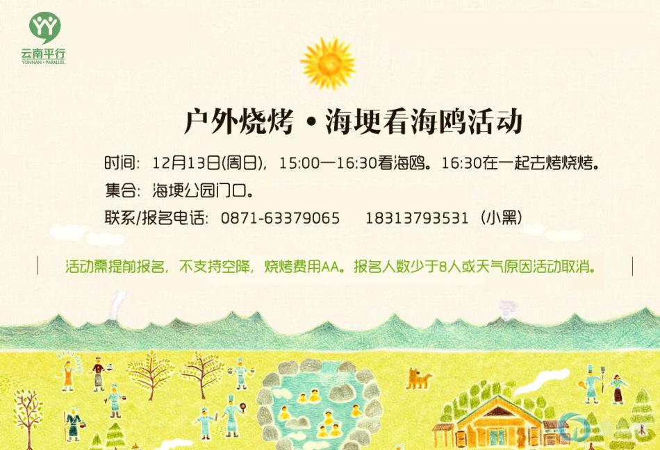 【活动主题】户外烧烤.海埂看海鸥(需提前报名)