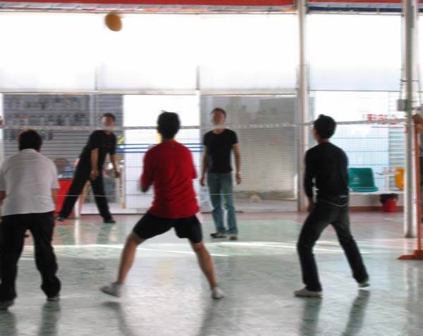 在进行羽毛球赛的同时,还进行了气排球的比赛。