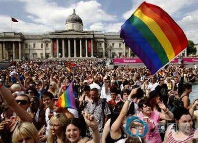 英国同性恋者4日在伦敦举行大游行,争取平等权利。英国首相布朗接见游行代表,布朗夫人还参加了游行。