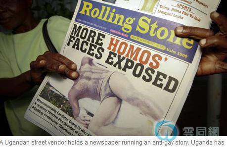 某乌干达报纸头条的反同性恋新闻,该国对同性恋行为往往实行严厉处罚