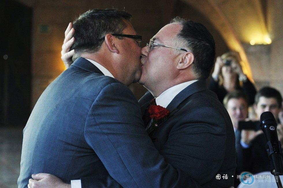 当地时间2012年12月19日,在西班牙格拉纳达,澳大利亚政府社会事务部的部长伊恩·亨特(右)与自己的同性伴侣Leith Semmens举行婚礼。据悉,亨特是澳大利亚工党的高级成员,虽然位居高位,但是他从来都不掩饰自己是同性恋的事实,并且一直希望可以与自己的男友结婚,组织一个合法的家庭。可惜的是,由于澳大利亚始终不承认同性婚姻,因此他们不得不前往西班牙寻求帮助,最终他选择了西班牙城市格拉纳达。