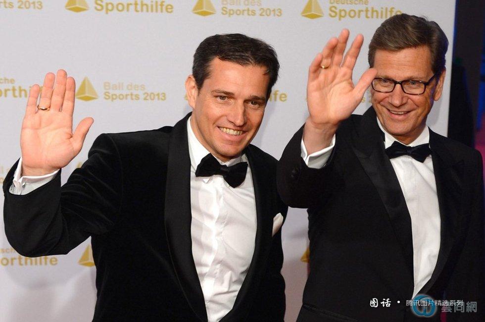 当地时间2013年2月2日,德国威斯巴登,德国外长韦斯特韦勒(右)与伴侣迈克尔·穆隆兹参加活动。