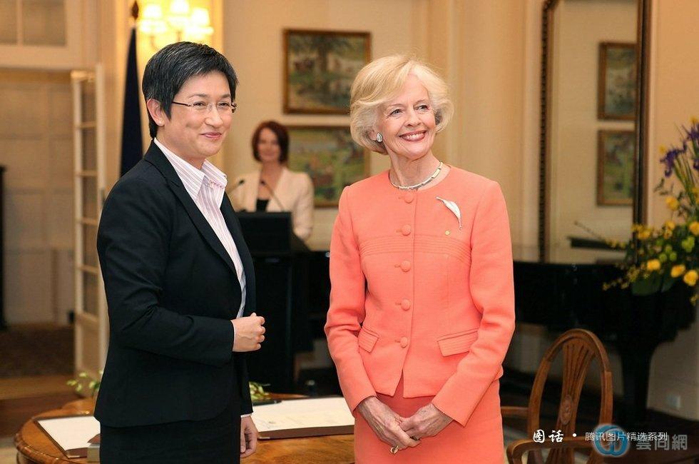 2010年9月14日,堪培拉,国会议员黄英贤(左)宣布就职。黄英贤是澳洲首位华裔女部长,并公开为同性恋者。
