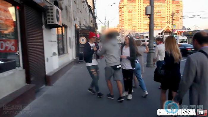 视频中许多人从他们身边走过之后,回头用异样眼光打量他们,或出言嘲讽“俩基佬牵手”、“你们在俄罗斯搞什么”、“滚出俄罗斯”,甚至有人故意冲撞挑衅,令他们感到非常紧张。