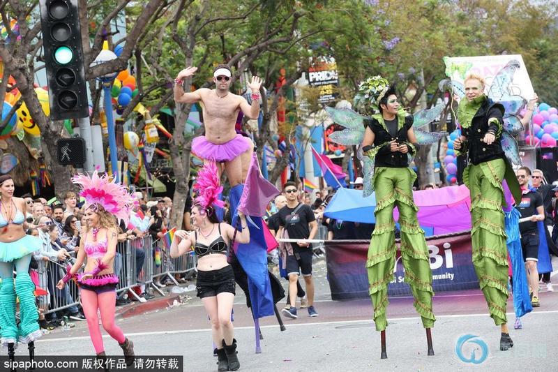 6月12日,美国洛杉矶同性恋骄傲巡游在西好莱坞举行,参加者纷纷声援佛罗里达州奥兰多市的同胞。当天早些时候,奥兰多同志夜总会“Pulse”发生严重枪击案。