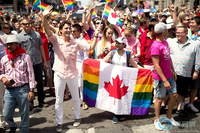 北美东部时间3日下午,加拿大总理贾斯汀·特鲁多(Justin Trudeau)在多伦多创造历史,成为该国首位参加同性恋骄傲巡游的总理。安大略省长凯瑟琳·韦恩(Kathleen Wynne)、多伦多市长约翰·托里(John Tory)等人也在活动中亮相,其中韦恩是加拿大首位公开同志身份的省长。