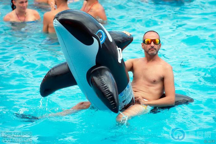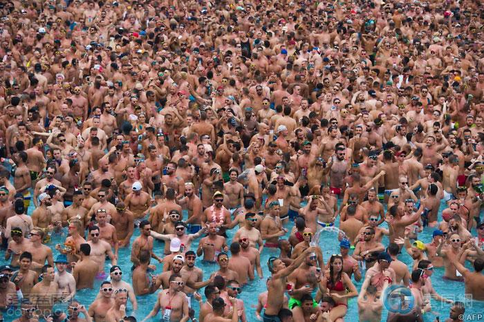 2022横渡钱塘江的肌肉男来了,大胸肌小泳裤太..
