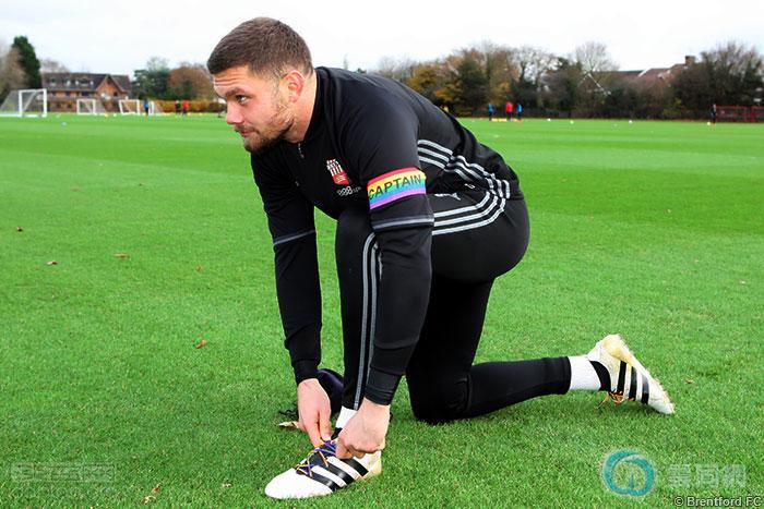 布伦特福德俱乐部参与“彩虹鞋带运动”,图为队长Harlee Dean