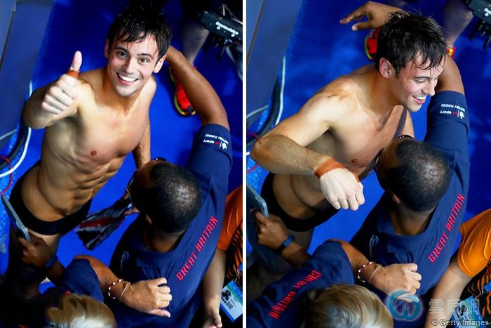 2017年游泳世锦赛男子单人10米跳台决赛22日在匈牙利布达佩斯举行,汤姆·戴利以590.95分夺金,他的丈夫和母亲都在现场庆祝。