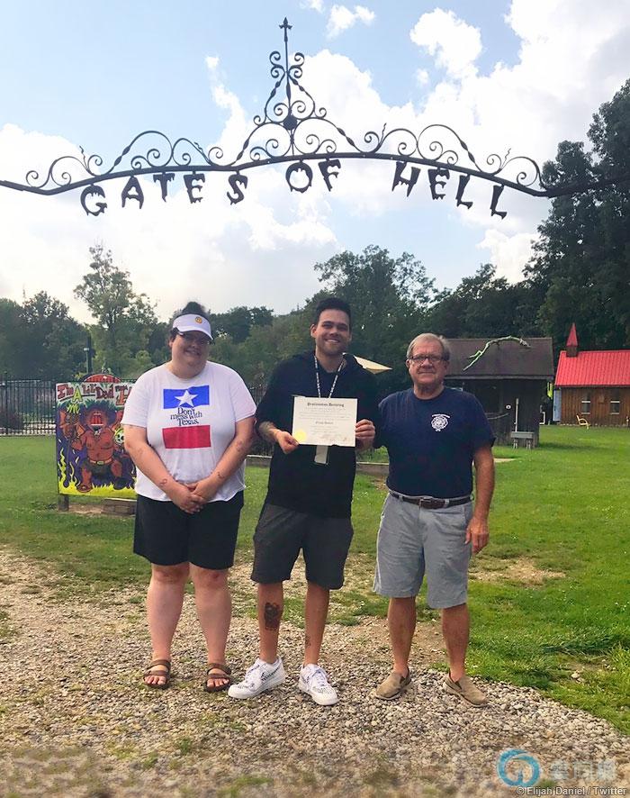 8月30日,在“地狱之门”下面,丹尼尔从镇民手中接过了任命状,正式成为“地狱老大”。其实镇民们也没得选,实在是没有人愿意来这个“恶名昭著”的小镇当领导。