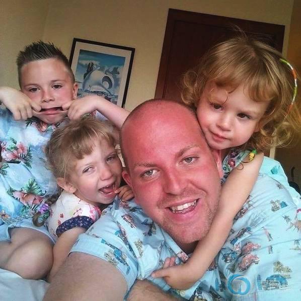 照片中的男士名叫Benjamin Carpenter,今年33岁,住在英国西约克郡Shepley,他身边的4个孩子都是他领养回来的,4个有着不同病患被抛弃的孩子。