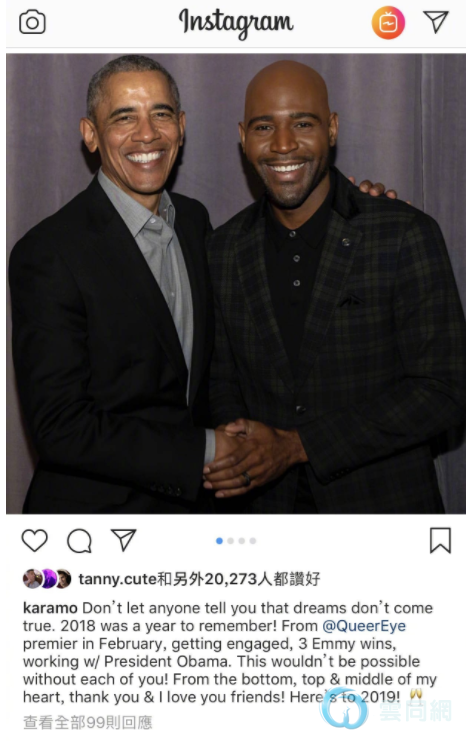 据悉,真人秀综艺新版《粉雄救兵》(Queer Eye)拿下了今年艾美最佳有组织真人秀节目、最佳有组织真人秀剪辑以及最佳有组织真人秀卡司三项大奖,作为嘉宾的卡拉莫因节目收获了大批粉丝,还有机会同美前任总统奥巴马合影。而在年底还与灵魂伴侣完成终身大事,卡拉莫·布朗的2018年可谓是“三喜临门”。