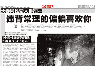 编注:10月13日出版的《城市晚报》以大篇幅对中国同性恋群体进行报道,深度剖析酒吧、浴室、聊天室等同性恋者非常熟悉的场所。尽管文章内容在同性恋成因等方面存在错误,但也提醒我们应当洁身自好,让上述交流场所不再被视为淫秽肮脏之地,并启发人们对同性恋者所需的生存环境和生活方式进行思考。