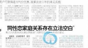 他建议,准予同性伴侣在民政部门进行家庭关系登记,将同性家庭纳入法律调整范围内。