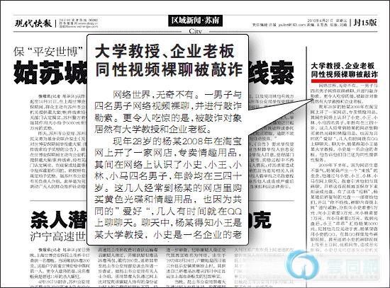 现年28岁的杨某2008年在淘宝网上开了一家网店,专卖情趣用品,其间在网络上认识了小史、小王、小林、小马四名男子,年龄均在三四十岁。这几人经常到杨某的网店里购买黄色光碟和情趣用品,也因为共同的“爱好”,几人有时间就在QQ上聊聊天。聊天中,杨某得知小王是某大学教授,小史是一名企业的老板。他告诉他们自己还为同性提供性服务。
