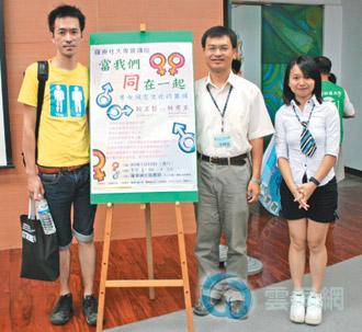 上图:宜兰县罗东社区大学昨天邀请同志赖正哲(左一)、林寒玉(右一)对谈同志文化。